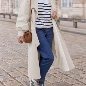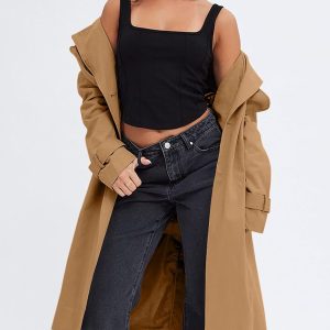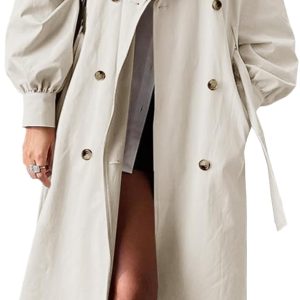 Women Long Trench Coat Fall Fashion Oversized Double Breasted Lapel Overcoat Oerwear with Belt
