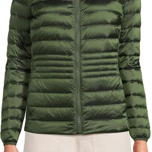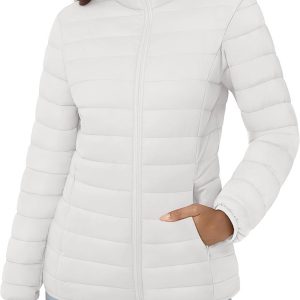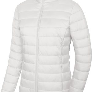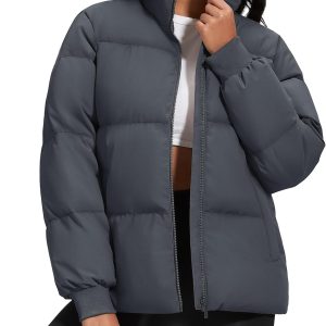 Women Winter Down Puffer Jackets Stand Collar Zip Up Water Resistant Warm Padded Quilted Coat with Pockets