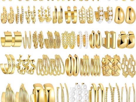 42 Pairs Gold Hoop Earrings Set for Women, Fashion Chunky Pearl Earrings Multipack Twisted Statement Earring Pack, Hypoallergenic Small Big Hoops Earrings for Birthday Party